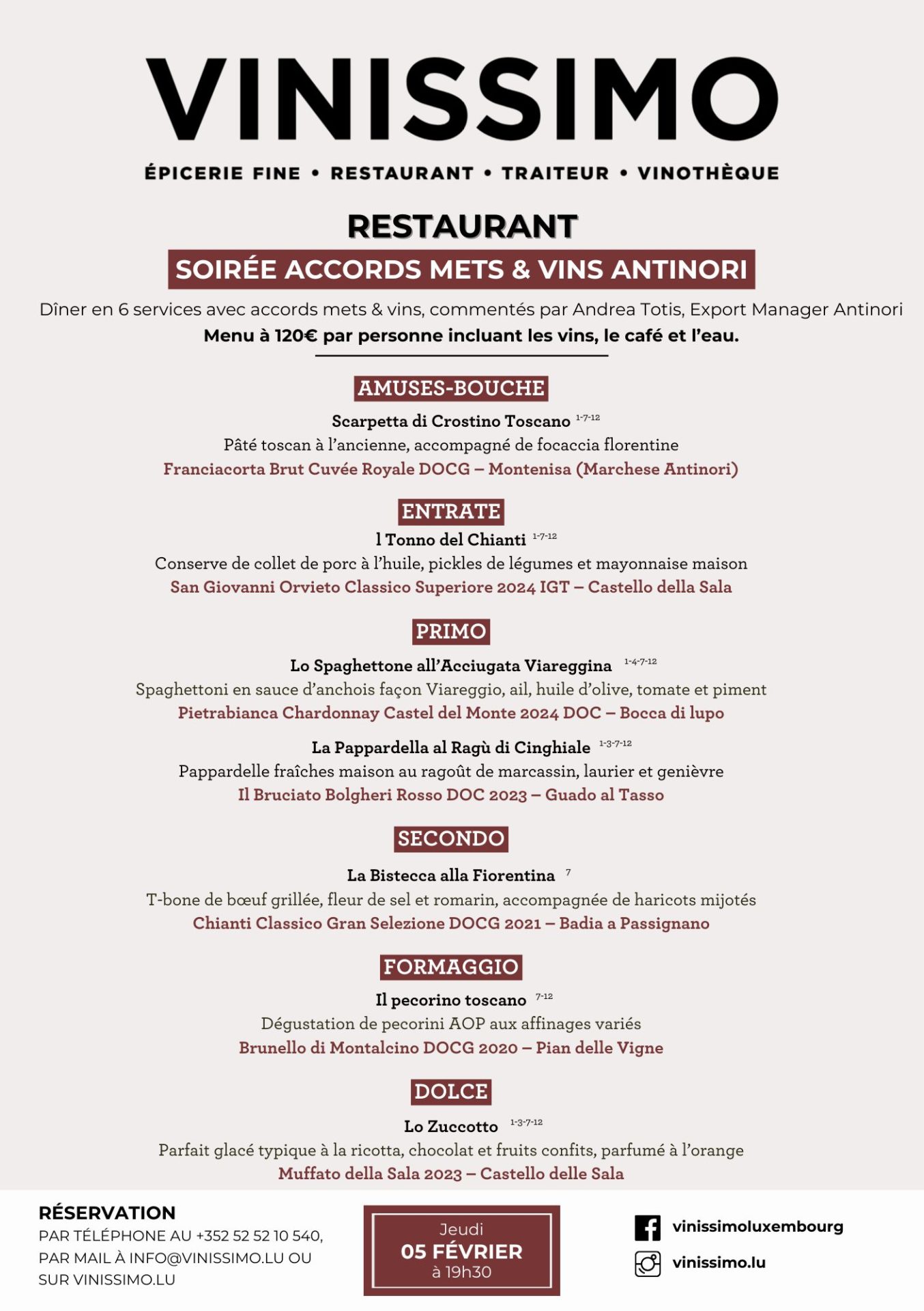 Une occasion rare de découvrir des accords subtils, des vins d’exception et l’univers Antinori dans un cadre intimiste et gastronomique.