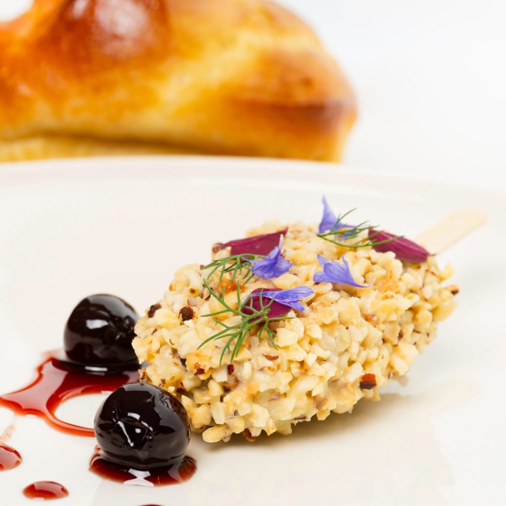 Terrina di foie gras d’anatra, nocciola Piemontese IGP, amarena e brioche calda