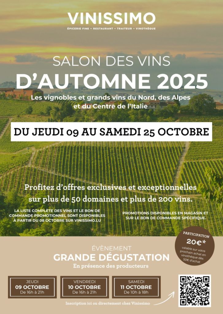 Le bon de commande promotionnel sera disponible dès le 8 octobre 2025 sur vinissimo.lu.